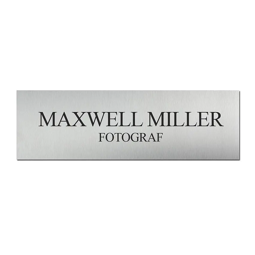 Ein Türschild aus Edelstahl mit Lasergravur ist für Praxen, Kanzleien, öffentliche Gebäude, für Privathäuser sowie für Firmen aller Branchen die erste Wahl. Die Edelstahlgravur ist schwarz und das Schild ist 2 mm stark. Die Abmessungen bei diesem Produktangebot betragen 30 x 10 cm.