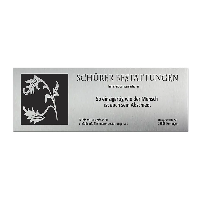 Firmenschild aus Edelstahl - schwarz lasergraviert