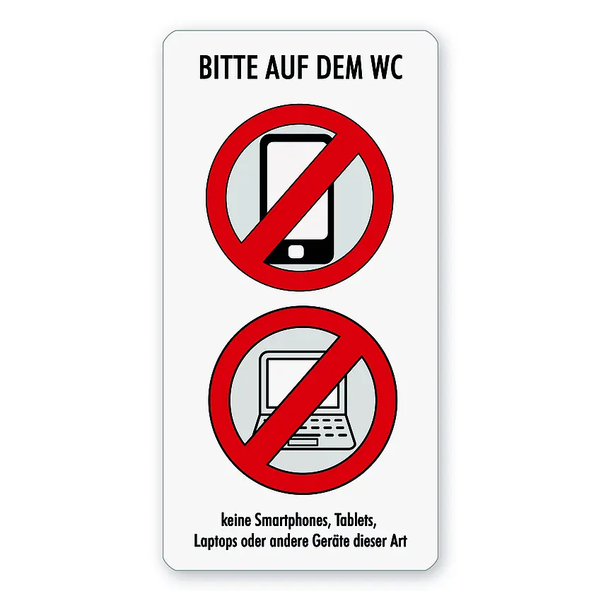 Das Schild weist auf ein Verbot für Smartphones, Tablets, Laptops oder andere Geräte dieser Art.