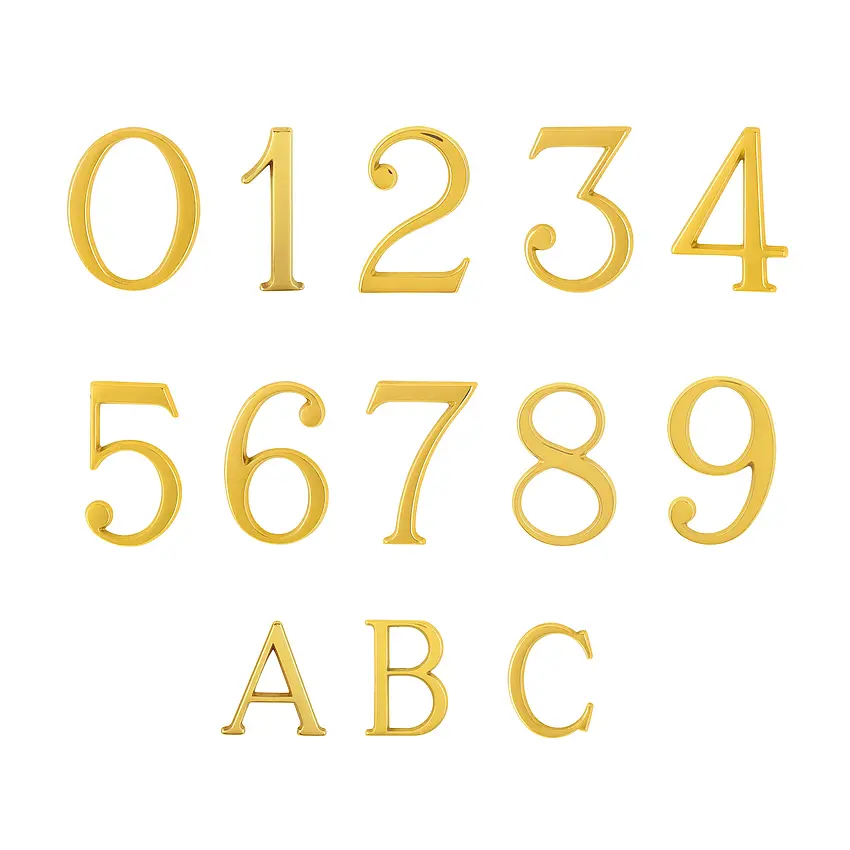 Diese Messinghausnummern wirken durch ihr edles Design auffallend, aber nicht aufdringlich. Durch ihren besonderen Oberflächenschutz erhalten sie eine harte und verschleißfeste Oberfläche und zeichnen sich durch hohe Korrosions- und Anlaufbeständigkeit aus. UV-Beständigkeit und Resistenz gegen Umwelteinflüsse runden die durchweg positiven Eigenschaften dieser Hausnummern ab. Die Lieferung erfolgt inklusive Befestigungsmaterial: Stifte mit Gewinde M4 X 30 mm und passende Dübel