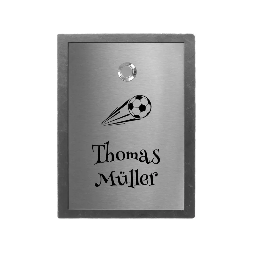 Das Klingelschild besteht aus eine Schieferplatte und einer Edelstahlplatte. Das Schild wird nach Ihren Wünschen beschriftet. Sie können aus vielen Schriften und Symbolen auswählen. Möchten Sie Einfluss auf die Gestaltung nehmen, dann empfehlen wir Ihnen die Option Vorabentwurf. Sie erhalten einen Gestaltungsvorschlag und können Wünsche äußern.